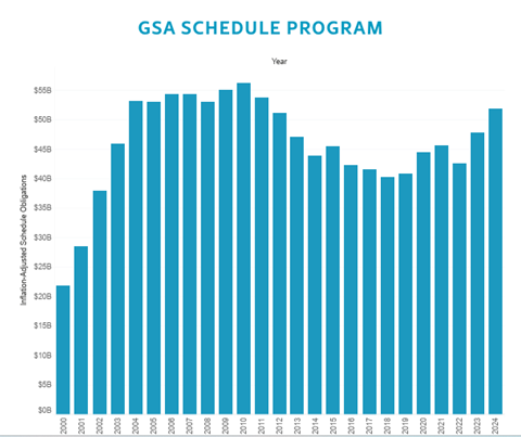 In fiscal year (FY) 2024, the Federal Government spent more than 4755 billion on contracts, a 3 percent decrease from the previous year. The Government also spent more than $51 billion through the GSA Schedule Program, which according to GSA makes the Schedule the largest purchasing program in the world.